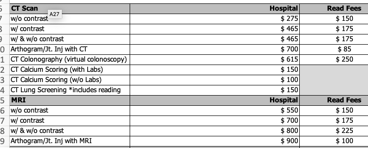 CT Scan and MRI hospital fees